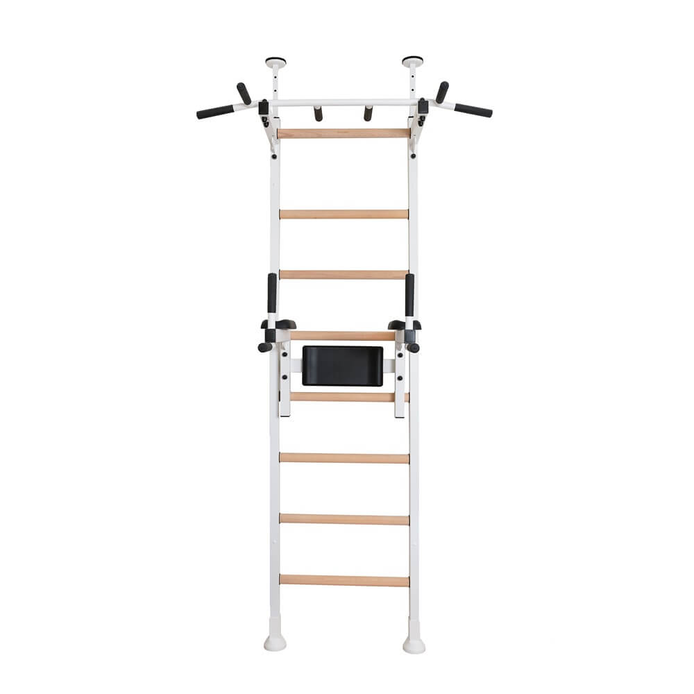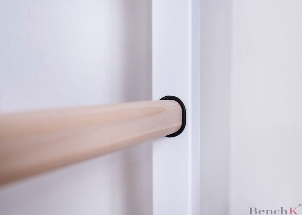 Ein Vorteil der BenchK Sprossenwand Serie 5 ist es, dass jedes Element mit Leichtigkeit auf die passende Höhe eingestellt werden kann. Diese Sprossenwand ist daher eine perfekte Ergänzung für jede Wohnung bzw. jedes Büro und eignet sich auch für kommerzielle Einrichtungen. Die Sprossenwand kann entweder auf der Wand verschraubt oder auch mittels Boden Decken Montage befestigt werden.