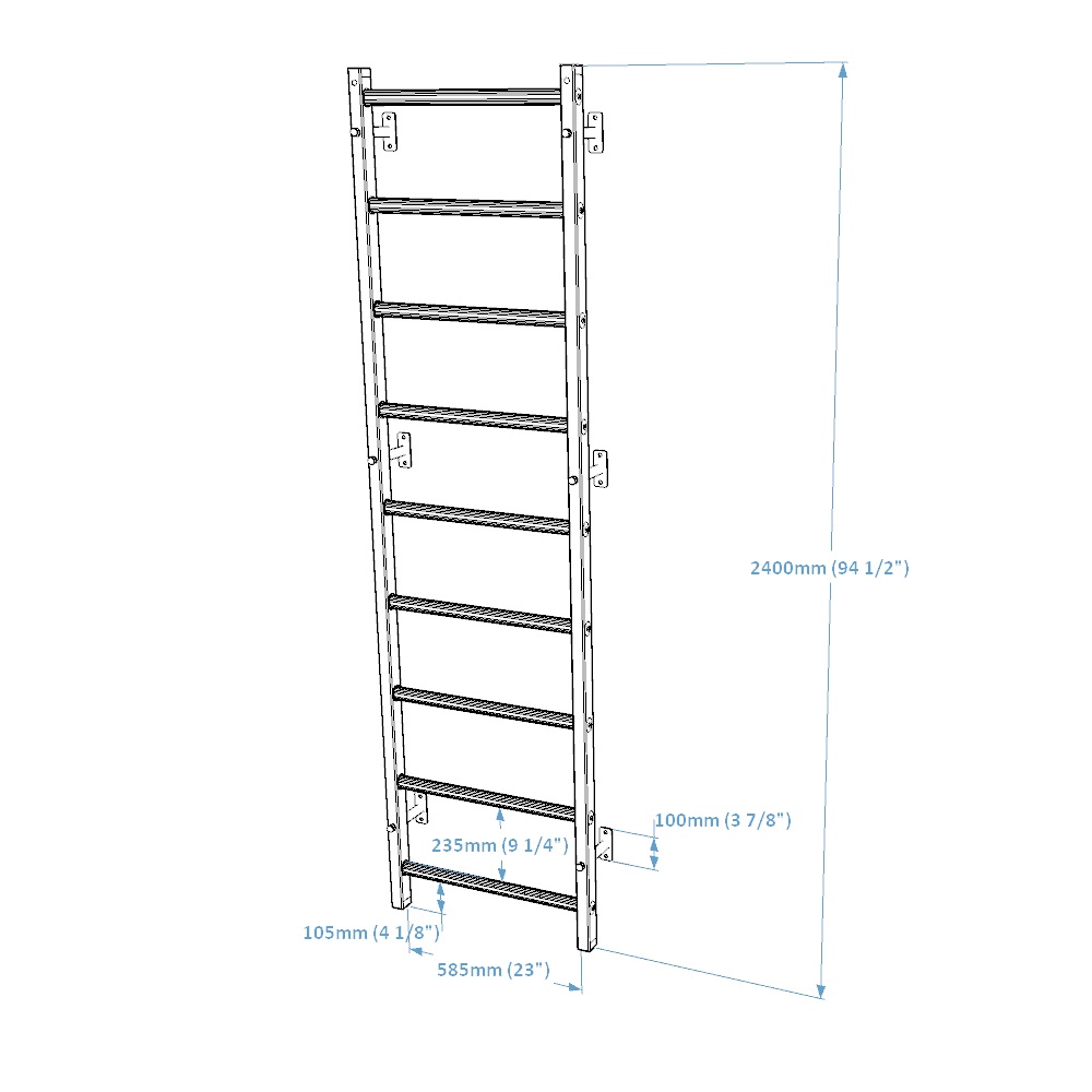 Ein Vorteil der BenchK Sprossenwand Serie 7 ist es, dass jedes Element mit Leichtigkeit auf die passende Höhe eingestellt werden kann. Diese Sprossenwand ist daher eine perfekte Ergänzung für jede Wohnung bzw. jedes Büro und eignet sich auch für kommerzielle Einrichtungen.