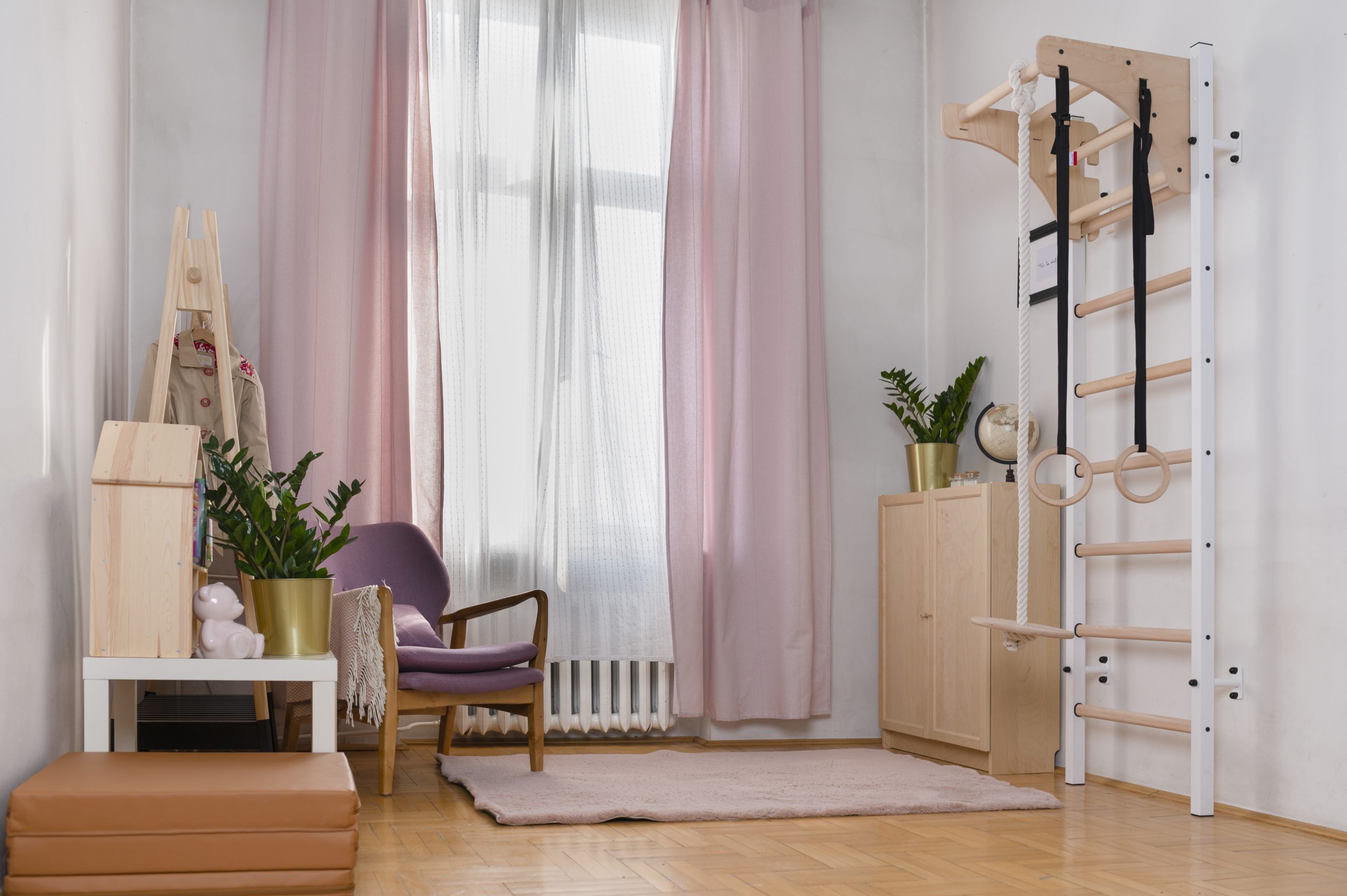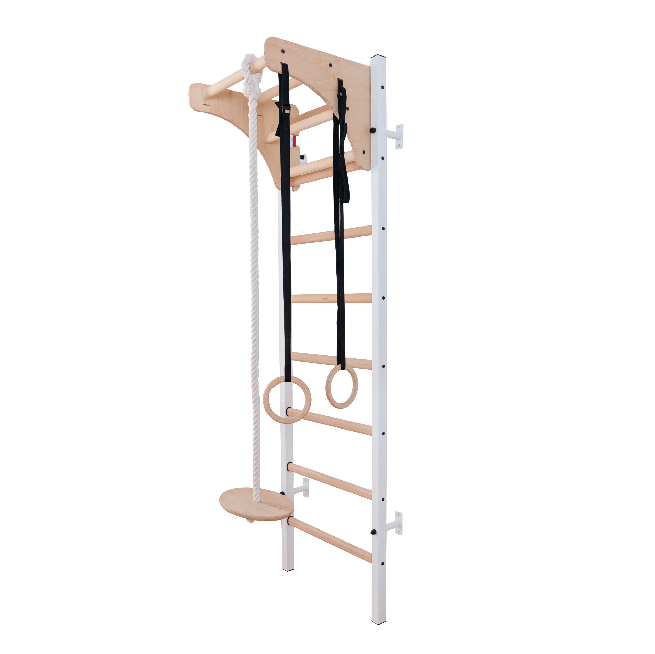 Ein Vorteil der BenchK Sprossenwand Serie 2 ist es, dass jedes Element mit Leichtigkeit auf die passende Höhe eingestellt werden kann. Diese Sprossenwand ist daher eine perfekte Ergänzung für jede Wohnung bzw. jedes Büro und eignet sich auch für kommerzielle Einrichtungen. Aufgrund der geringen Höhe von 230cm passt die Serie 2 nahezu in jeden Raum.