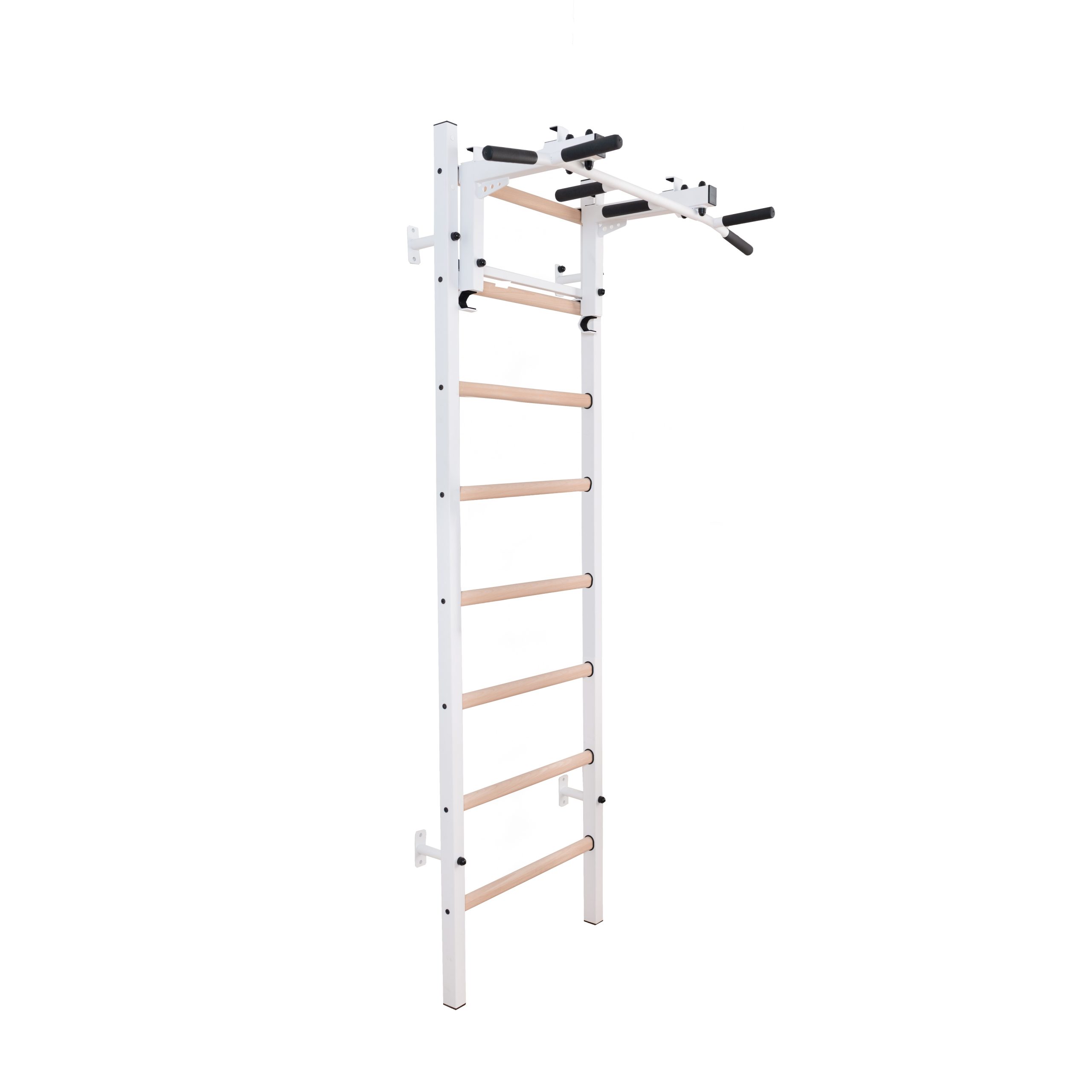 Ein Vorteil der BenchK Sprossenwand Serie 2 ist es, dass jedes Element mit Leichtigkeit auf die passende Höhe eingestellt werden kann. Diese Sprossenwand ist daher eine perfekte Ergänzung für jede Wohnung bzw. jedes Büro und eignet sich auch für kommerzielle Einrichtungen. Aufgrund der geringen Höhe von 230cm passt die Serie 2 nahezu in jeden Raum.