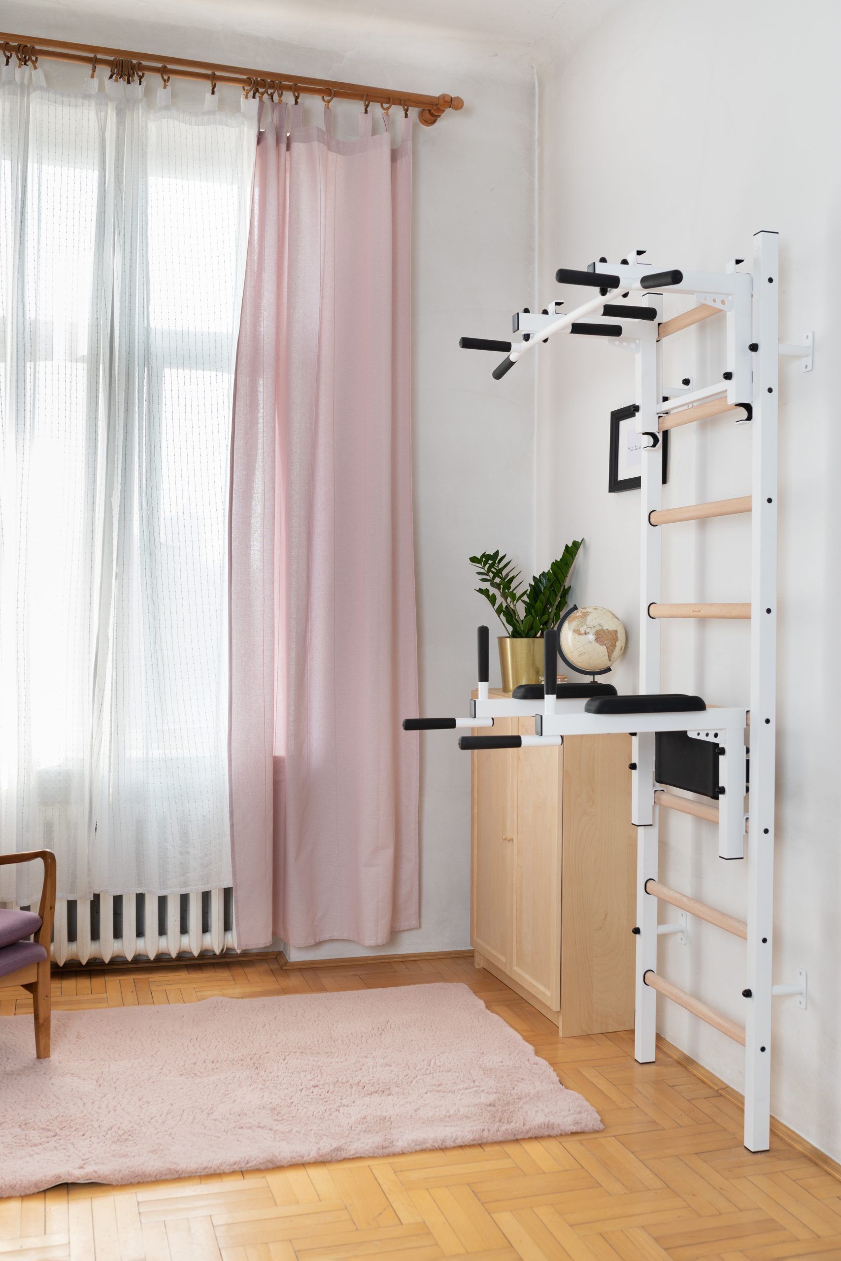 Ein Vorteil der BenchK Sprossenwand Serie 2 ist es, dass jedes Element mit Leichtigkeit auf die passende Höhe eingestellt werden kann. Diese Sprossenwand ist daher eine perfekte Ergänzung für jede Wohnung bzw. jedes Büro und eignet sich auch für kommerzielle Einrichtungen. Aufgrund der geringen Höhe von 230cm passt die Serie 2 nahezu in jeden Raum.