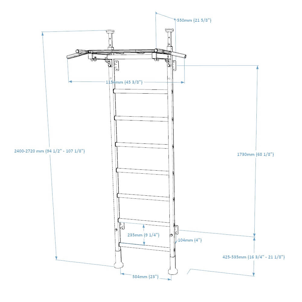 Ein Vorteil der BenchK Sprossenwand Serie 5 ist es, dass jedes Element mit Leichtigkeit auf die passende Höhe eingestellt werden kann. Diese Sprossenwand ist daher eine perfekte Ergänzung für jede Wohnung bzw. jedes Büro und eignet sich auch für kommerzielle Einrichtungen. Die Sprossenwand kann entweder auf der Wand verschraubt oder auch mittels Boden Decken Montage befestigt werden.