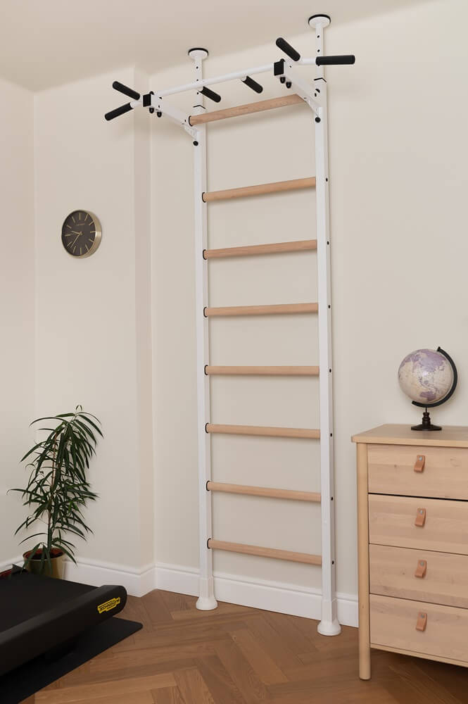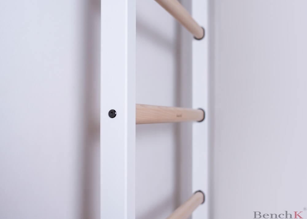 Ein Vorteil der BenchK Sprossenwand Serie 5 ist es, dass jedes Element mit Leichtigkeit auf die passende Höhe eingestellt werden kann. Diese Sprossenwand ist daher eine perfekte Ergänzung für jede Wohnung bzw. jedes Büro und eignet sich auch für kommerzielle Einrichtungen. Die Sprossenwand kann entweder auf der Wand verschraubt oder auch mittels Boden Decken Montage befestigt werden.
