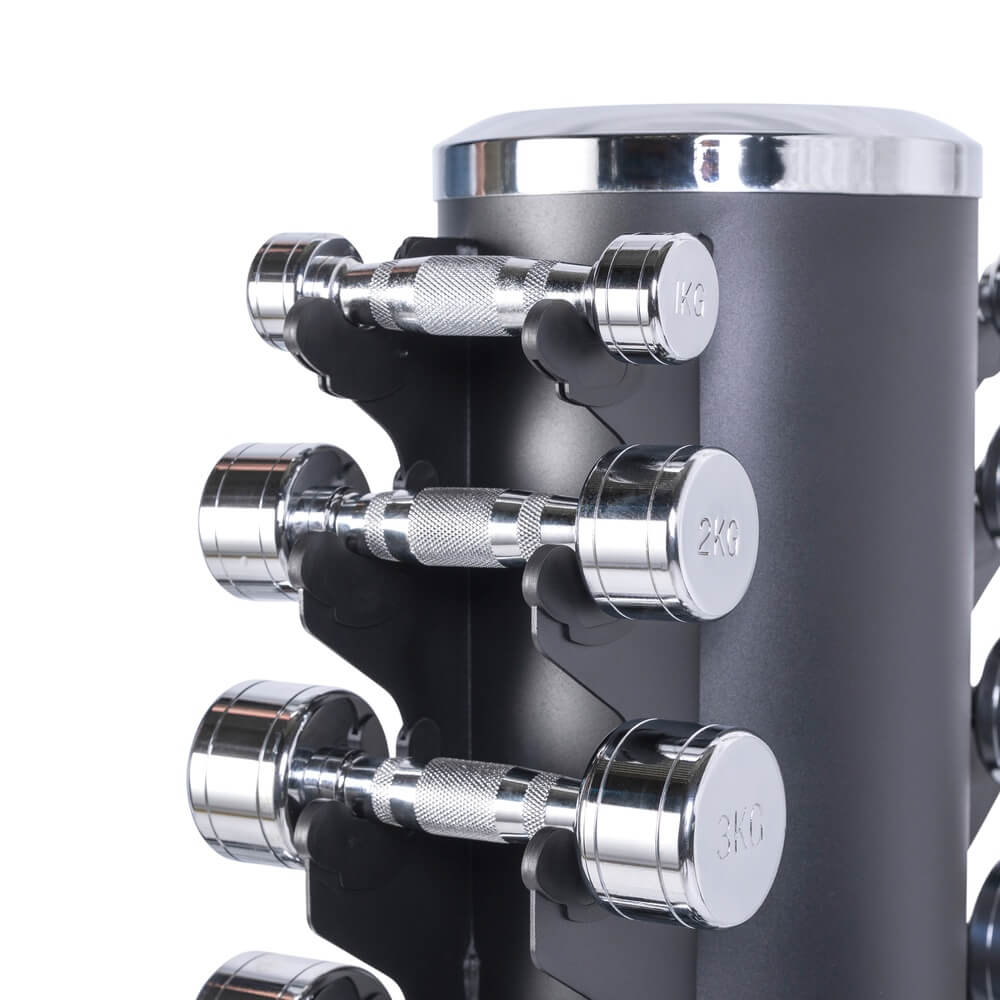 Chrom Hantelsatz 1 – 10 kg (10 Paar Hanteln) inklusive Ablage