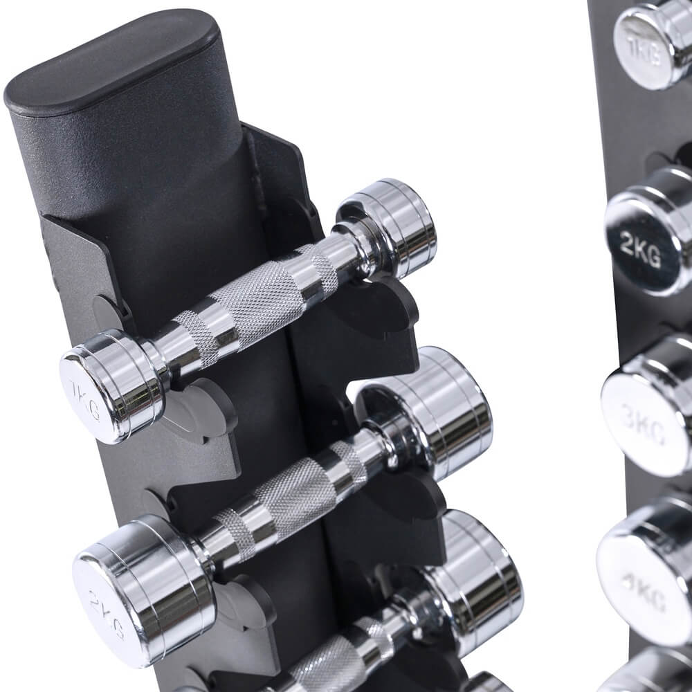 Chrom Hantelsatz 1 – 10 kg (10 Paar Hanteln) inklusive vertikaler Ablage