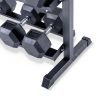 Unseren Hexagon Hantelsatz PVC mit 3-Reihiger Ablage gibt es wählbar in 2,5kg – 25kg (10 Hantelpaare) und 2,5kg – 30kg (12 Hantelpaare)