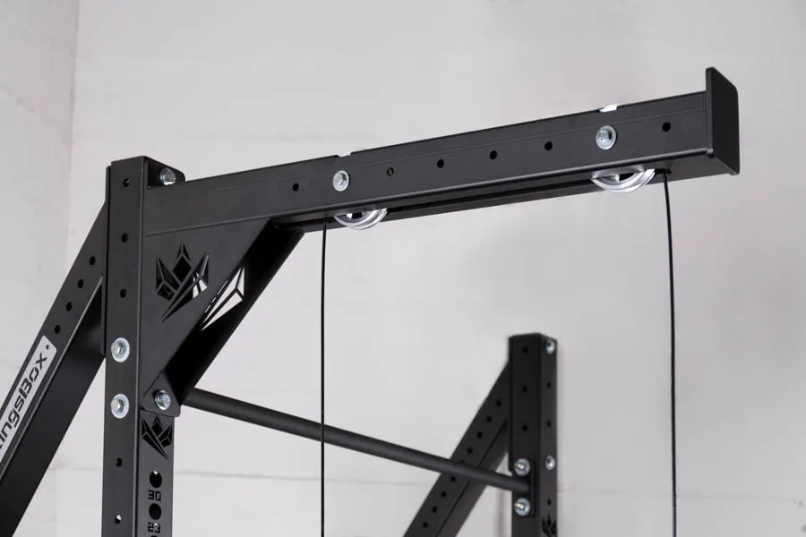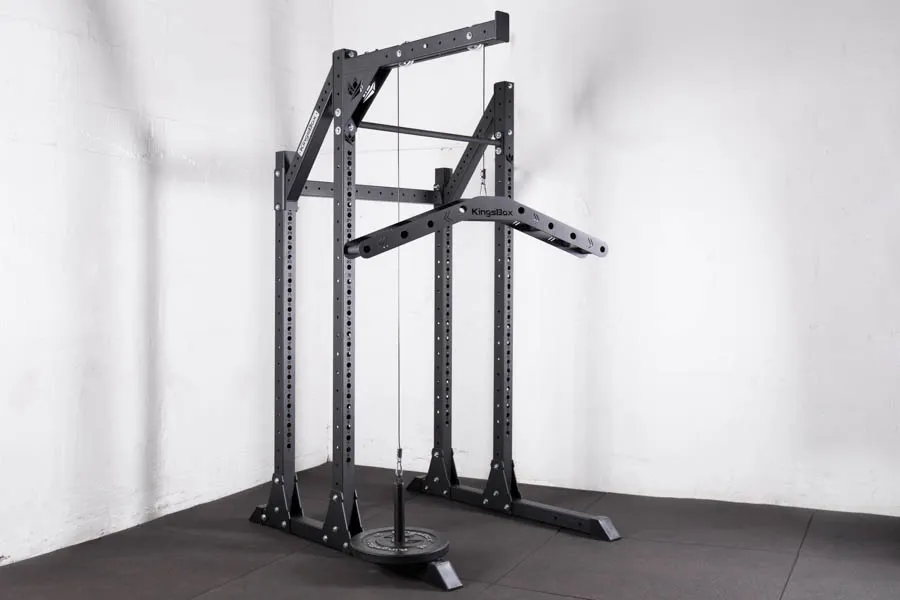 Dieses Produkt ist für alle, die auf der Suche nach einer preiswerten Kabelzugmöglichkeit für ihr Training sind. Zur Realisierung des KingsBox Mighty Pulley Attachement wurde der Mighty Branch als Grundlage genutzt. Dieser wurde von uns um zwei variabel einstellbare Zugsysteme und ein Stahlseil, zur Befestigung der Karabinerhacken und des Gewichts, erweitert.