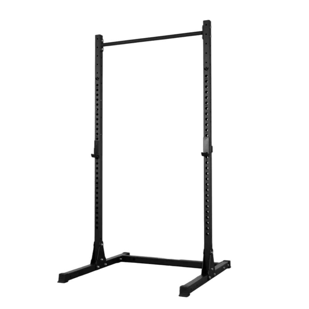 Dieses Squat Rack besteht aus hochwertigen 60 mm x 60 mm Stahlträgern, die bis zu 450 kg Zusatzgewicht aushalten. Das bedeutet, dass auch schwere Trainingseinheiten an diesem Gerät möglich sind. Für noch mehr Übungsvielfalt befindet sich eine Klimmzugstange zwischen den beiden Trägern. Um eine Lagermöglichkeit für Hantelscheiben zu erhalten und die Stabilität noch weiter zu verbessern, besteht die Möglichkeit Scheibenaufnahmen an der Seite zu befestigen. Das Rack ist stabil genug, um Muscle-Ups zu trainieren, wenn Sie es mit Bumper Plates beschweren oder mit den SX-Befestigern am Boden befestigen.