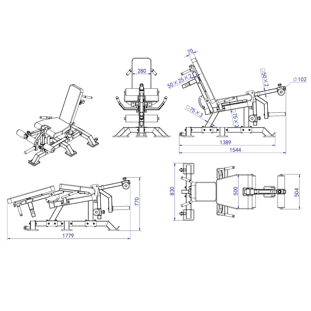 Primal Strength Pro Series Plate Loaded Leg Extension & Prone Leg Curl Maße und Gewicht:
