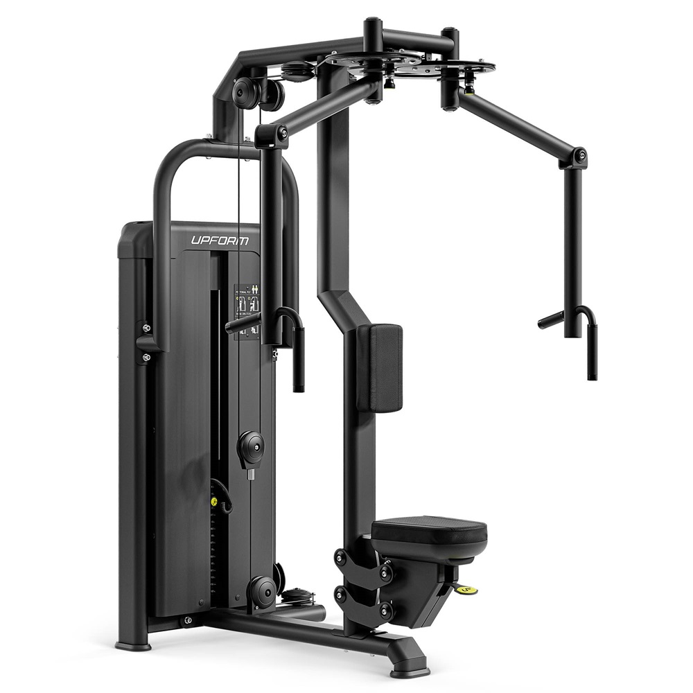 Der Butterfly / Reverse Butterfly 2-in-1 von UpForm bietet ein komfortables und effektives Training der Schulter, Rücken und Brustmuskulatur. Zu den zahlreichen Vorteilen gehören unter anderem: ein großer gepolsterter Sitzt, die Möglichkeit, eine bequeme Ausgangsposition zu wählen, ein Gewichtsblock sowie ergonomische Griffe.